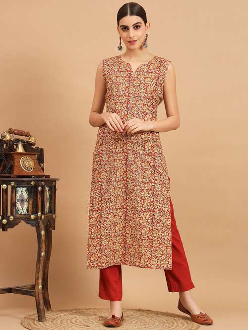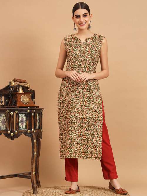 - Grab this beautiful kurta made up of cotton fabric featuring notch neck designs.