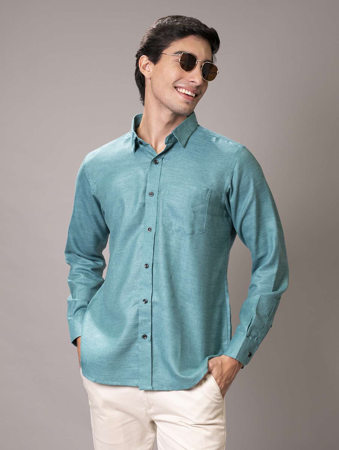 - Be a head turner by wearing this casual shirt from VEERA PARIDHAAN and grab it in teal colour.