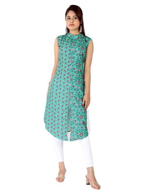 - » sea green printed asymmetric kurti