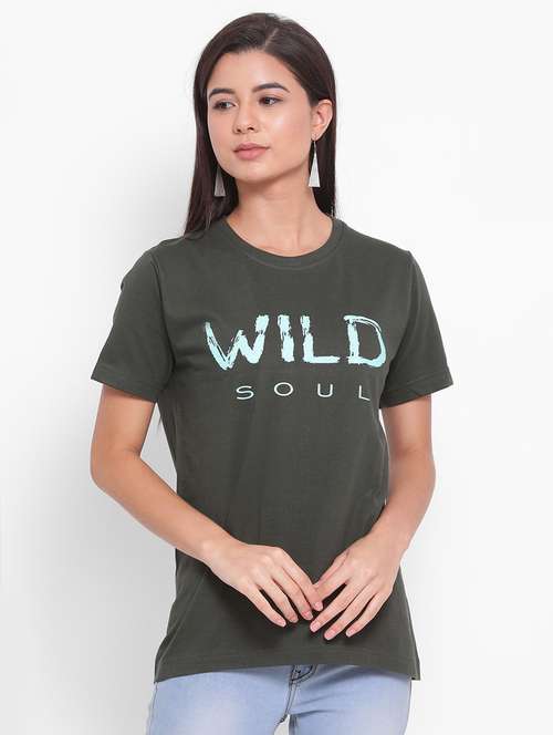 women's chest print round neck t-shirt - 19696770 - Very Small Image - 1