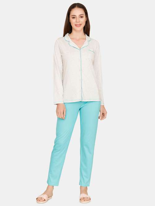 lapel neck shirt & pajama  nightwear set - 16481165 - Very Small Image - 1