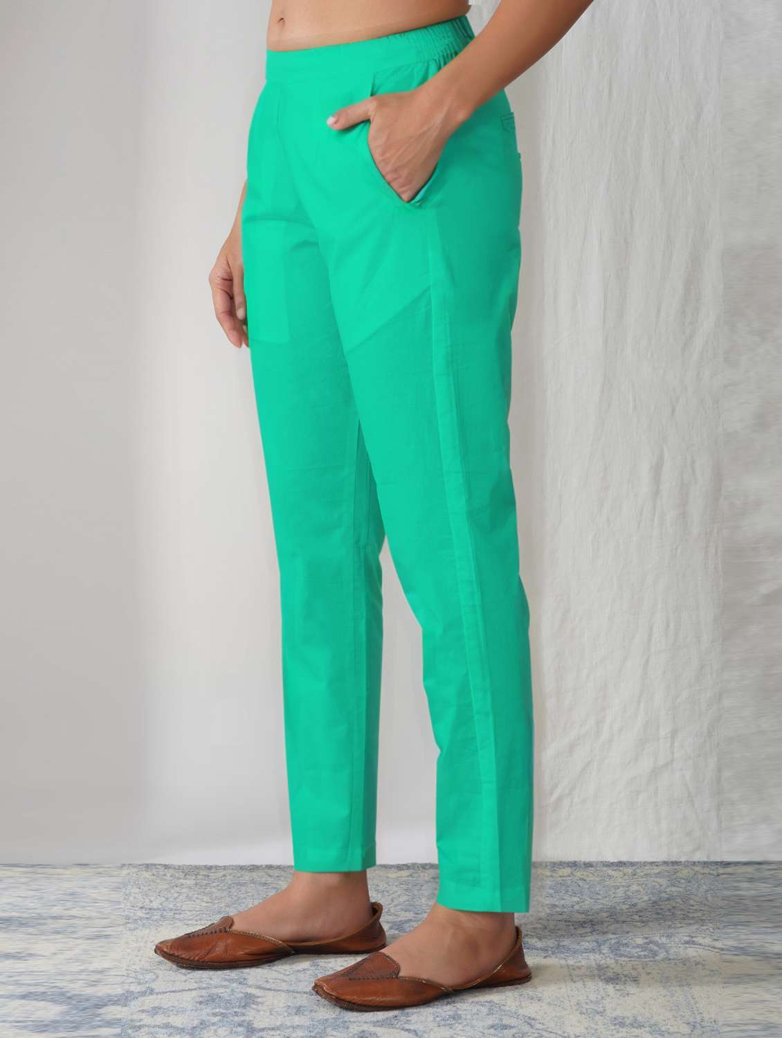 women solid mid rise ankle length tapered pant