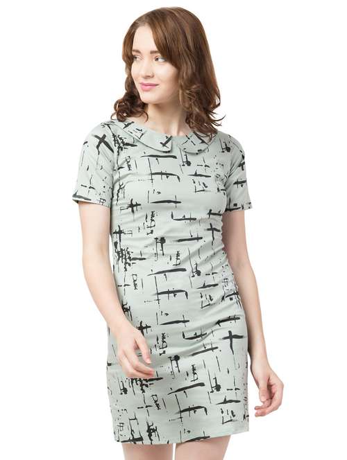 - Dress up in a soothing pattern and don this dress made of cotton material.