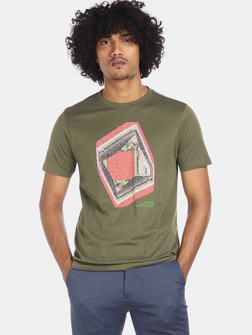 olive front print t-shirt
