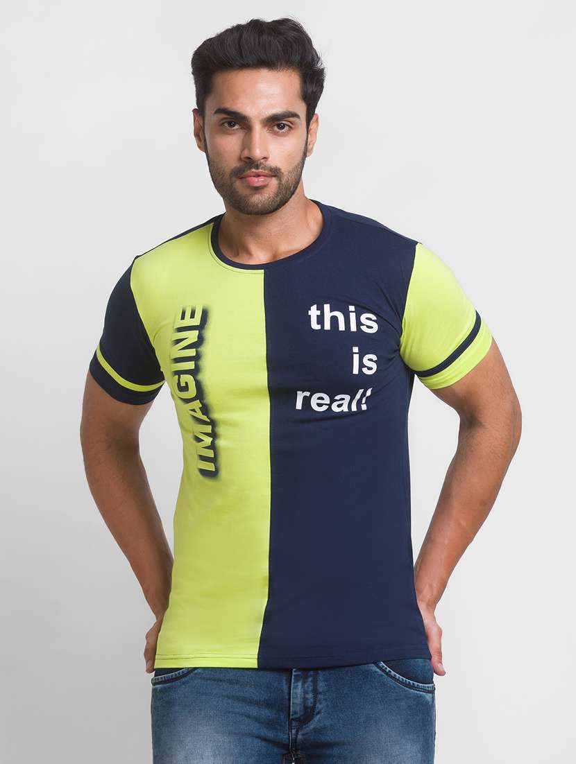navy-blue color-blocked t-shirt