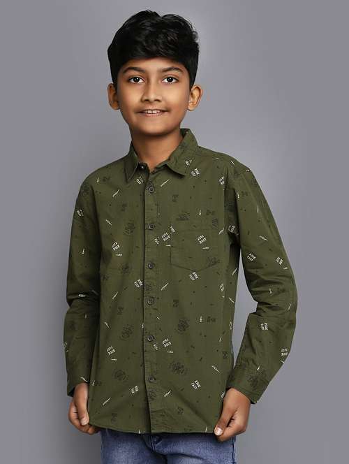 boys olive printed shirt