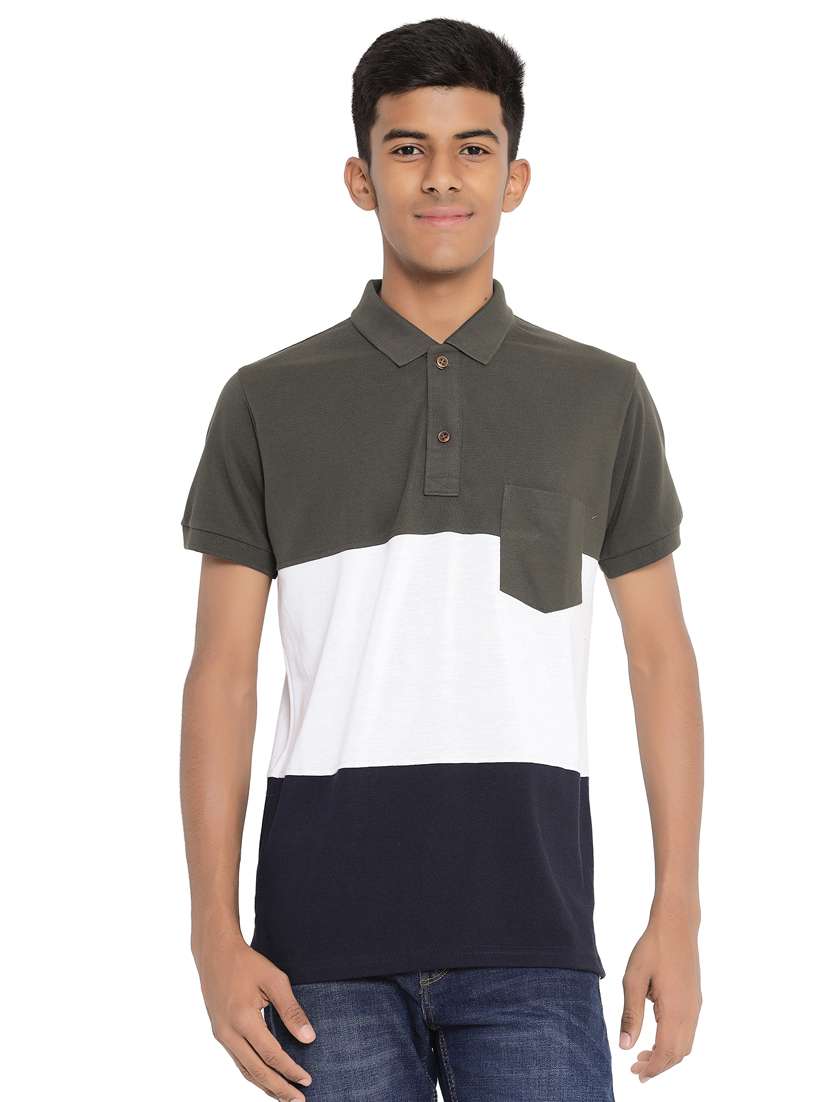 - » polo neck color block t-shirt