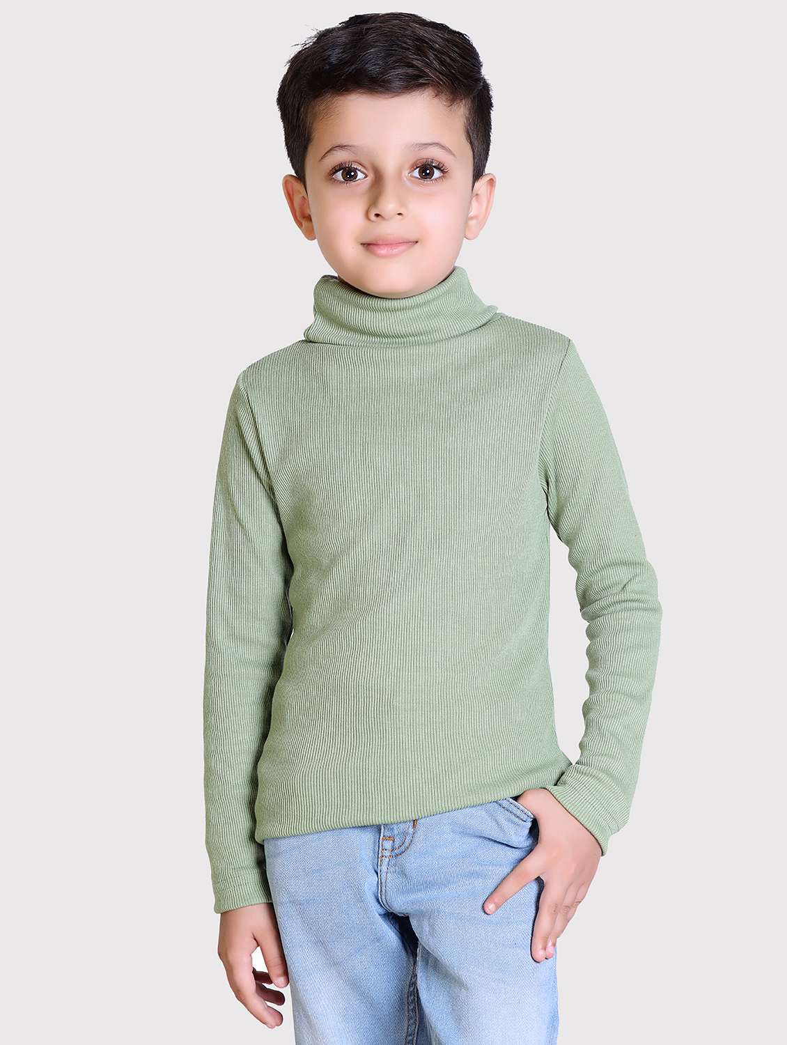 boys solid high neck long sleeve sweater