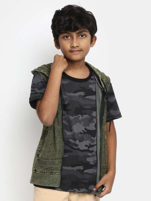 green round neck camouflage t-shirt with jacket