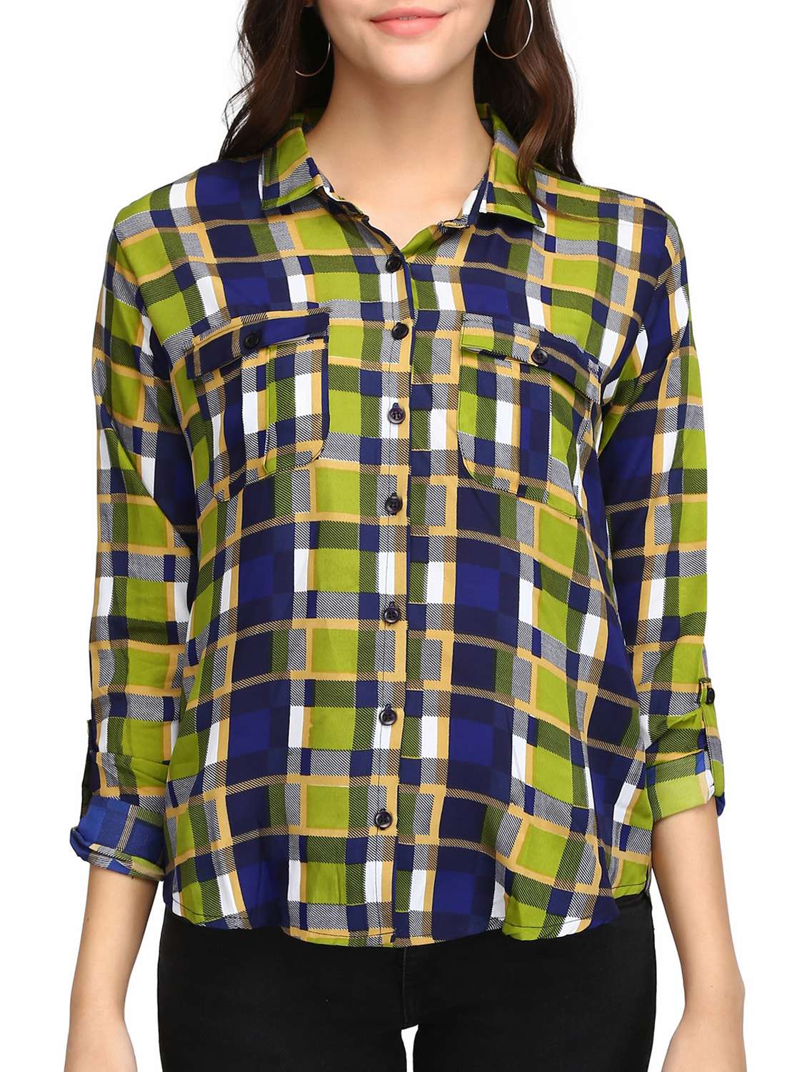 green crepe checkered shirt - 15155493 - Very Small Image - 1