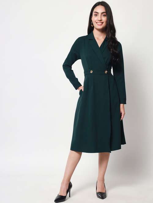 - Dress up in a soothing pattern and don this dress made of crepe material.