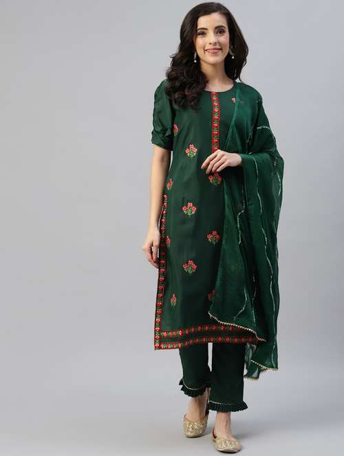 - » green straight pant suit unstitched suit