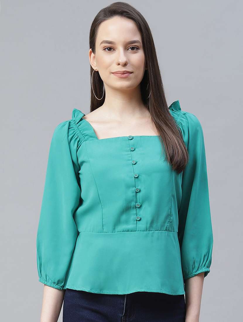 - » square neck solid peplum top