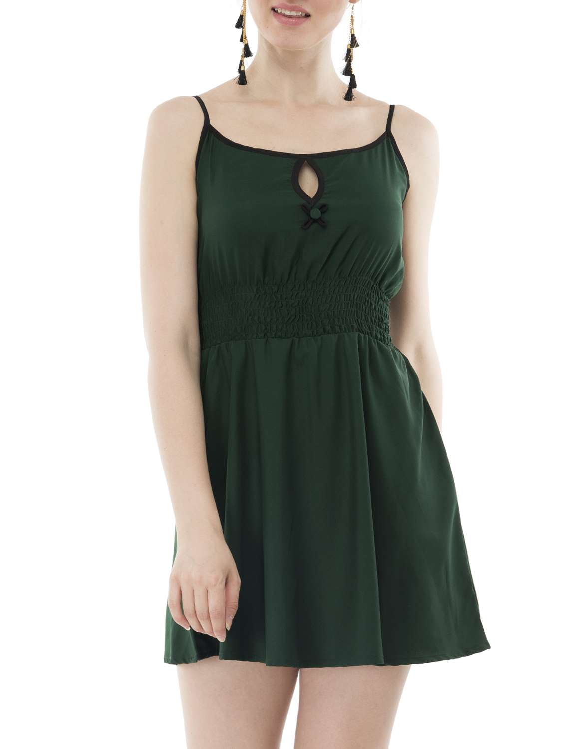green crepe fit & flare dress - 15048292 - Very Small Image - 1