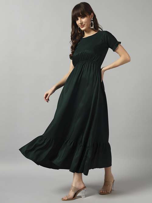 - Looking for some awesome collection of dresses? Well, lay your hands on this dress from Jash Creation and also get the option of choosing from bottle green colour.