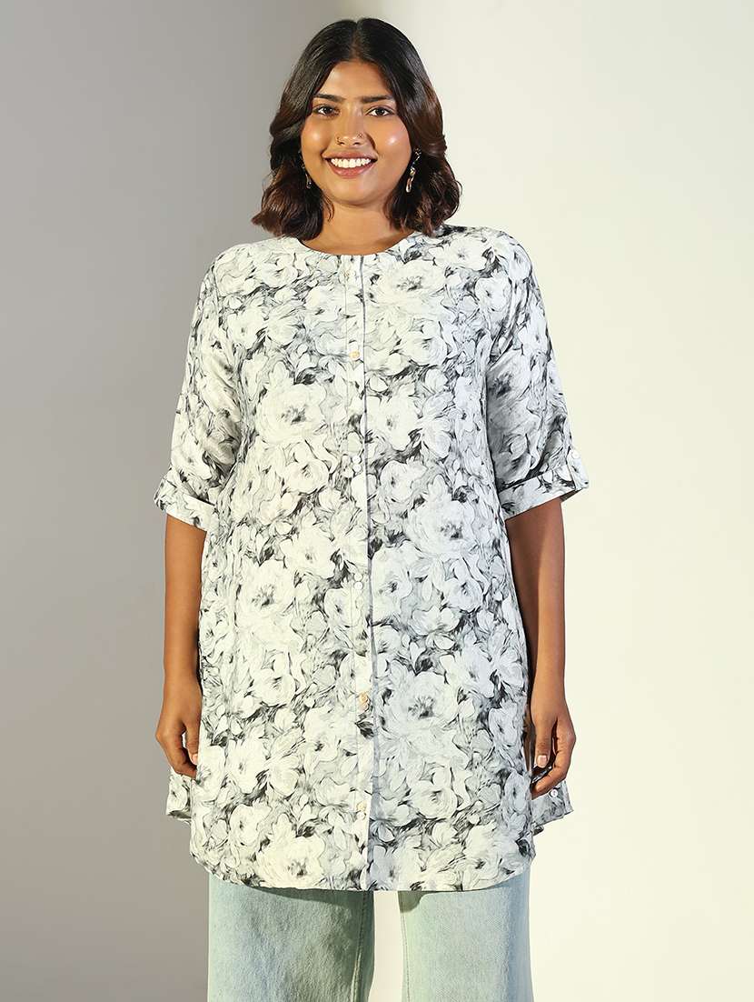 women floral roll up sleeve a-line kurti - 21696508 - Very Small Image - 1
