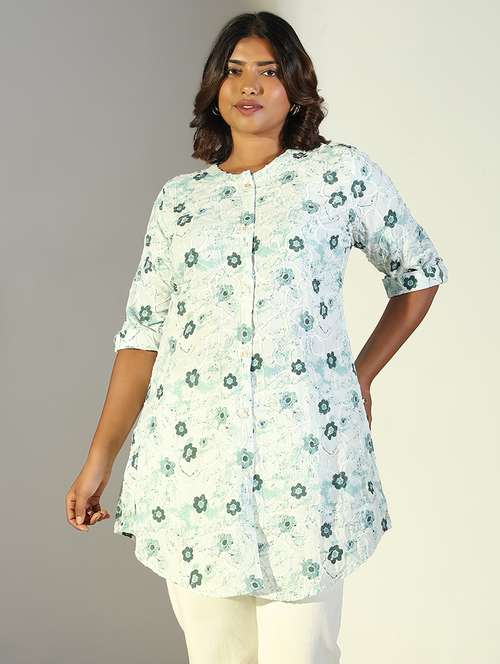 women floral roll up sleeve a-line kurti - 21696510 - Very Small Image - 1