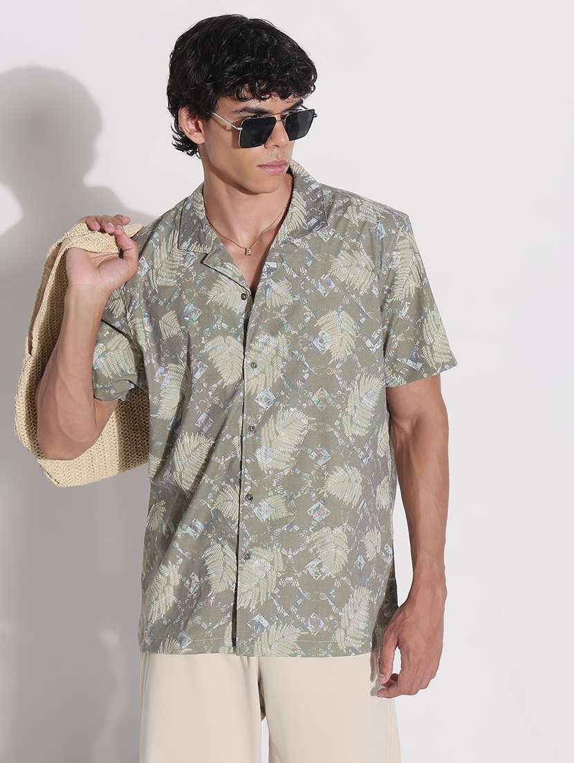 - » men printed cuban collar short sleeve loose fit shirt