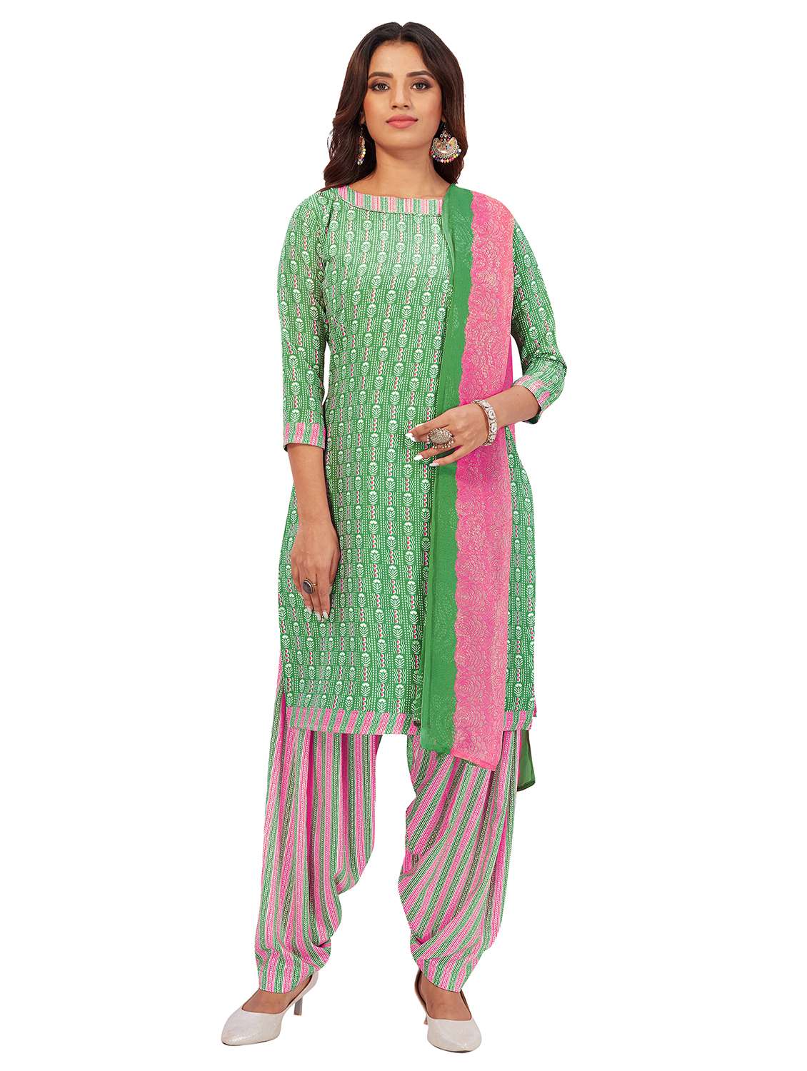 printed unstitched patiyala suit set
