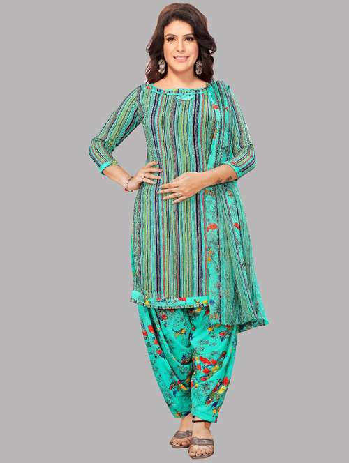 - Look ultra gorgeous in unstitched suits from VARSHA COLLECTION and grab these beautiful suits in green colour.