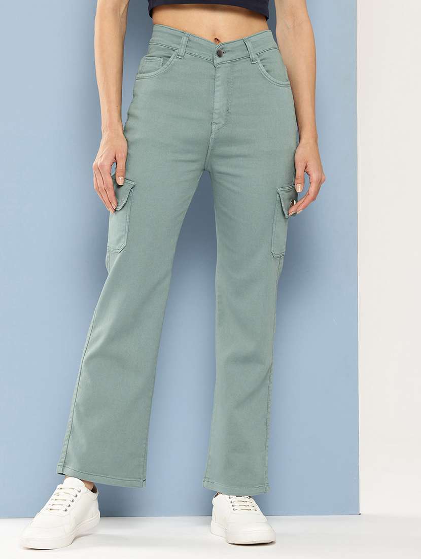 - » women solid high rise denim cargo