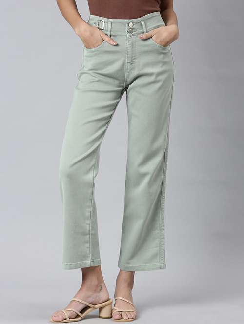 - » showoff women's high-rise stretchable cropped green straight fit jeans