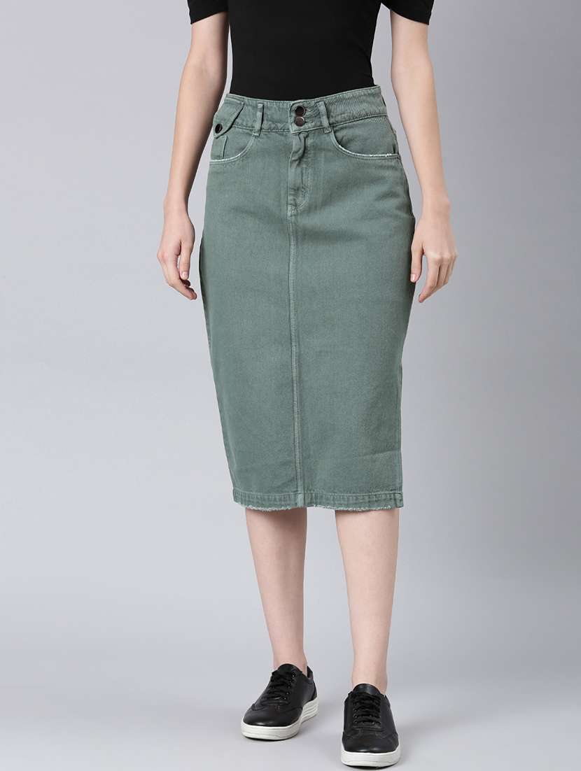 - Skirt lovers often have a hard time looking for that one skirt which literally blows their mind! Well, at LimeRoad you can browse through skirts from SHOWOFFFF and look cheerful in green colours.