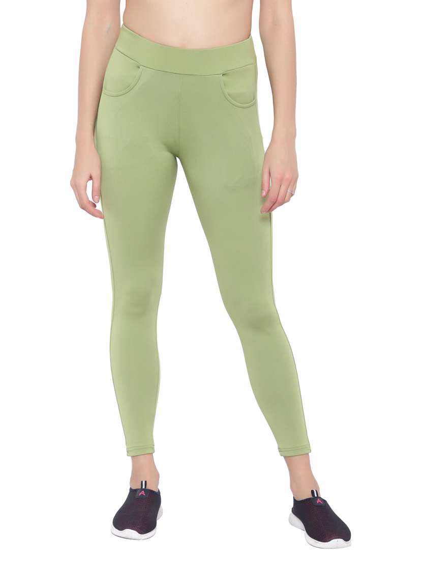 green polyester jeggings