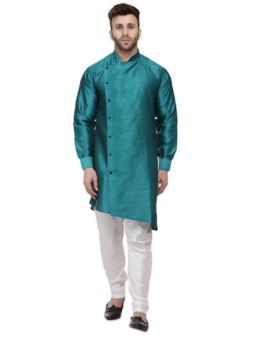 - » men solid mandarin neck asymmetric kurta