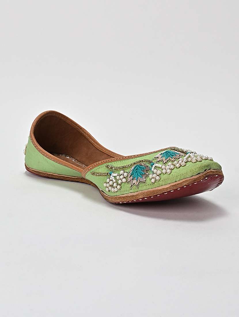 green embroidered slip on jutti