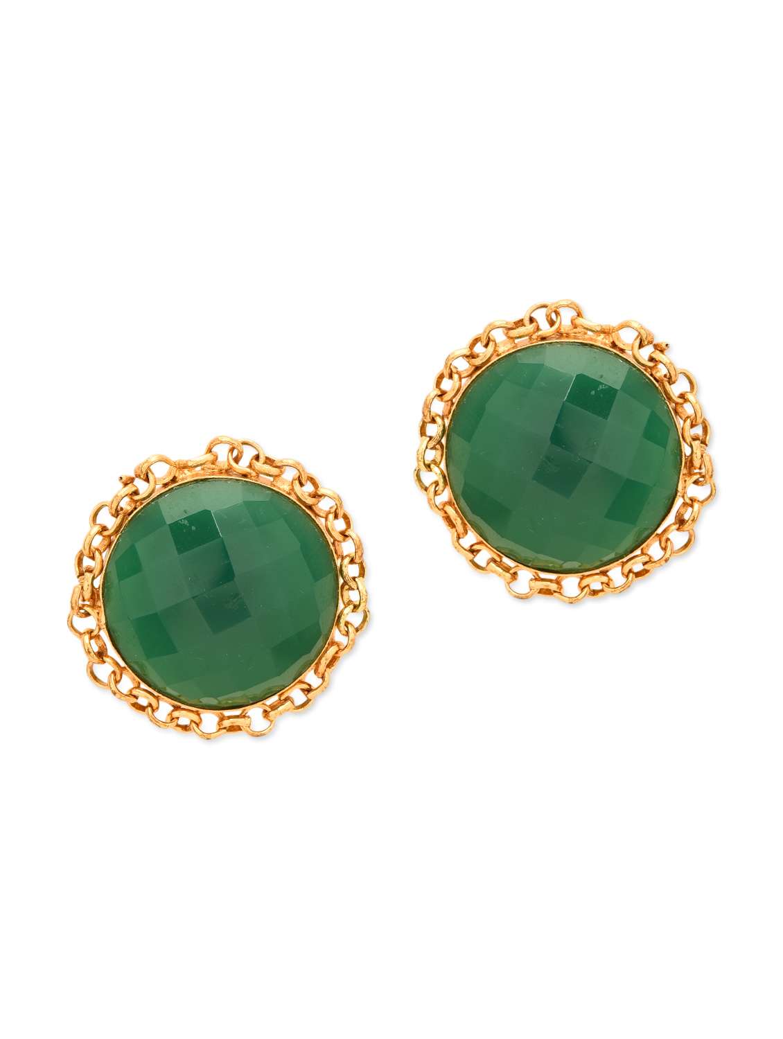 - » green faceted stone encrusted round earrings