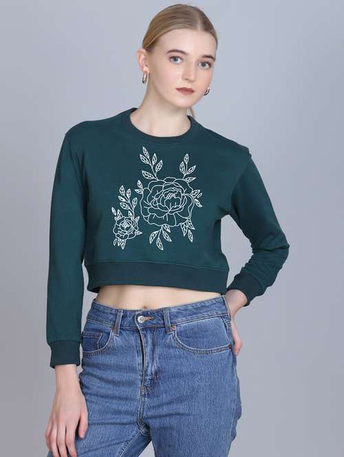 women printed long sleeve cropped sweatshirt - 22107446 - Very Small Image - 1