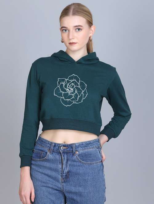 women long sleeve cropped hooded sweatshirt