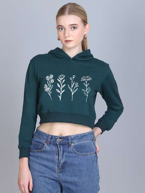 women long sleeve cropped hooded sweatshirt