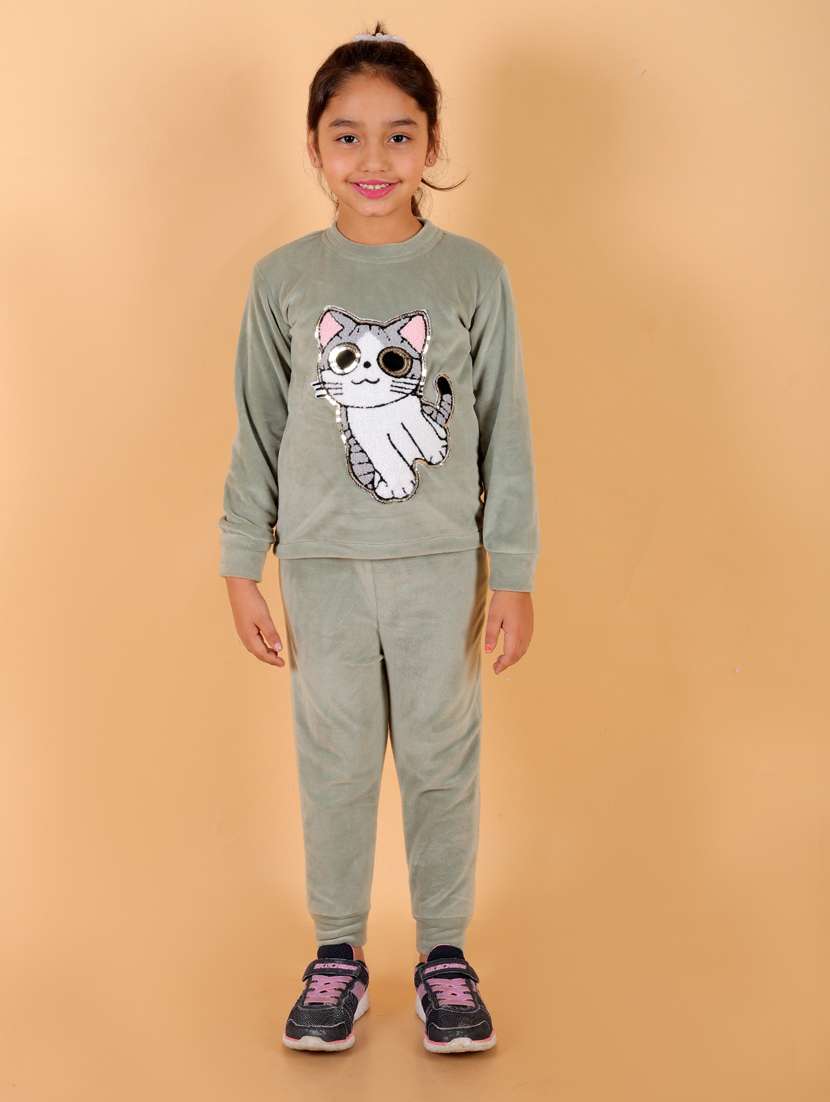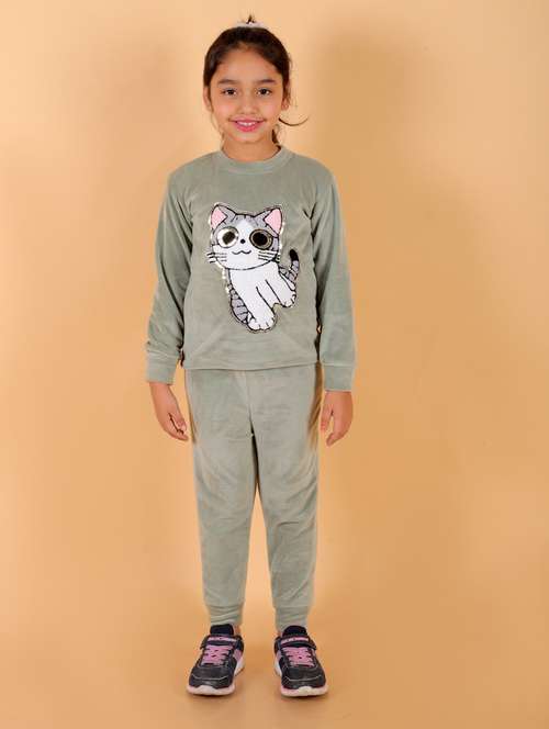 - » green front patch detailed top & pyjama set