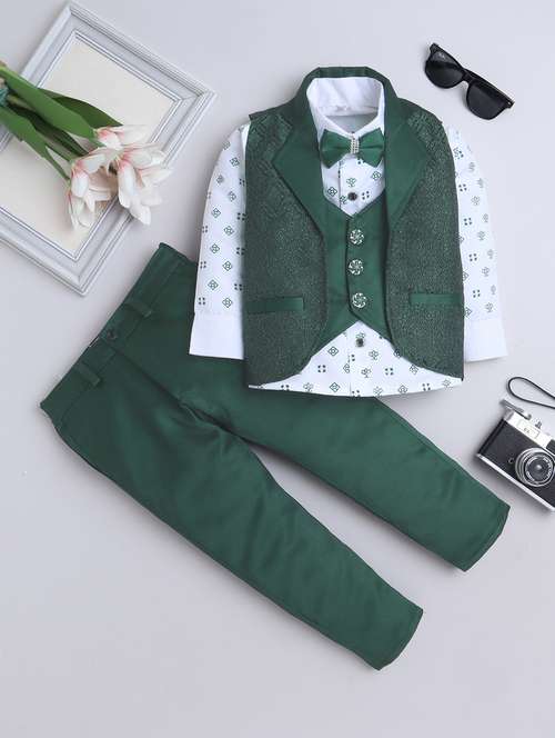 green polyester suit sets twin sets & boys printed shirt and trouser with waistcoat