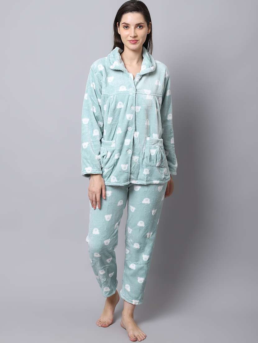 shirt collar printed nightwear payjama set
