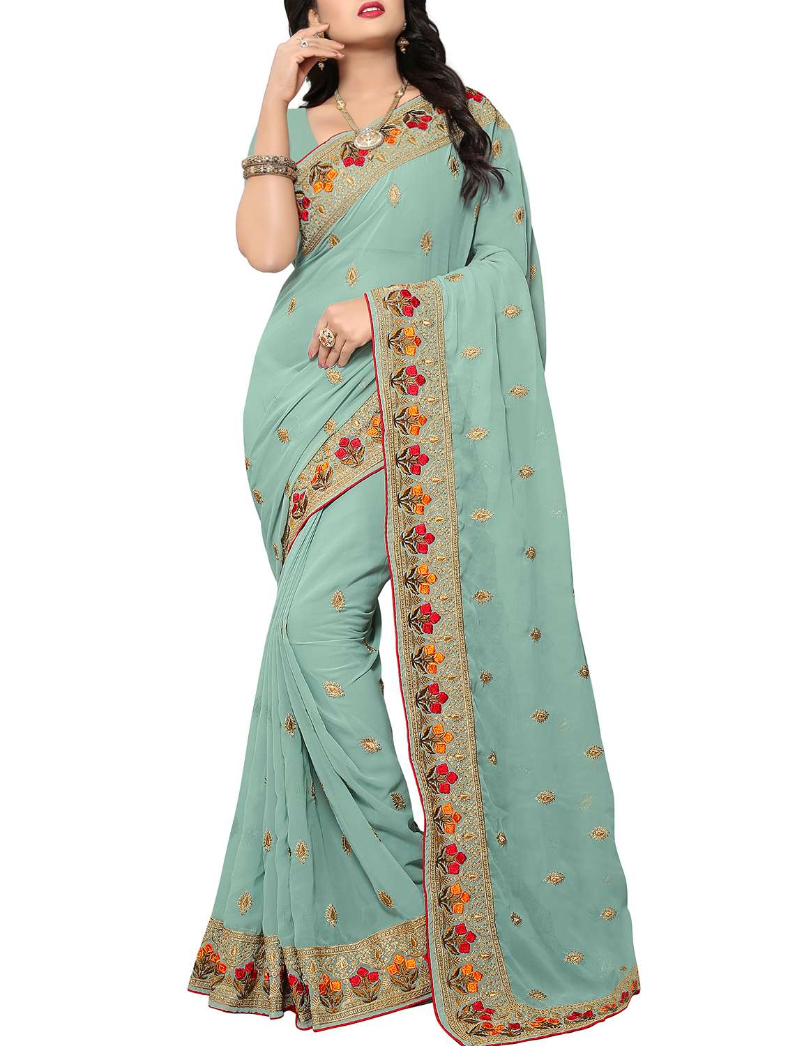 floral border zari embroidered saree - 15414404 - Very Small Image - 1