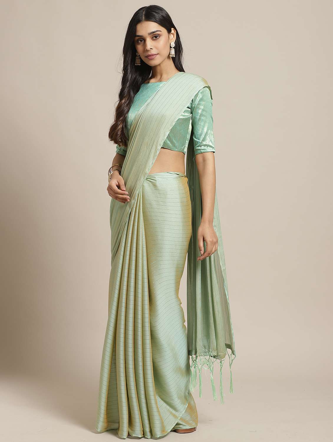 - » striped plain saree with blouse