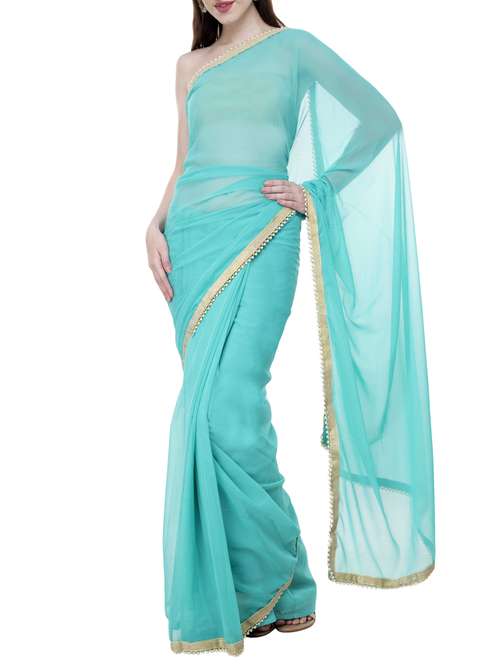 - » pearl embellished lace border saree with blouse