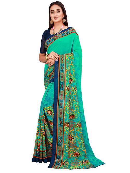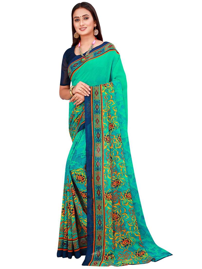 contrast bordered printed saree with blouse