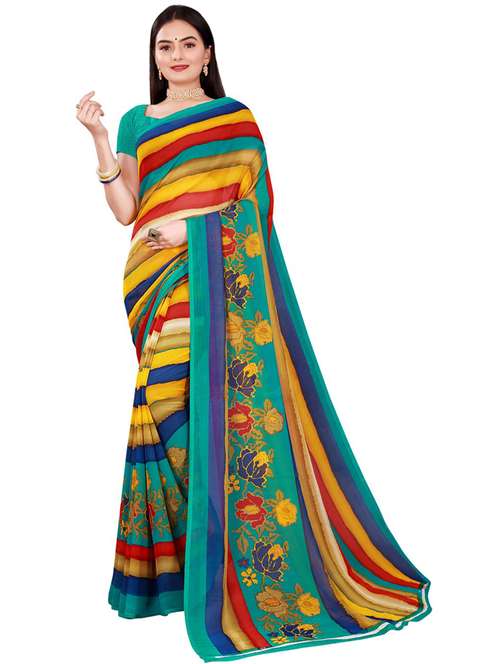 - » women's printed multi colored saree with blouse