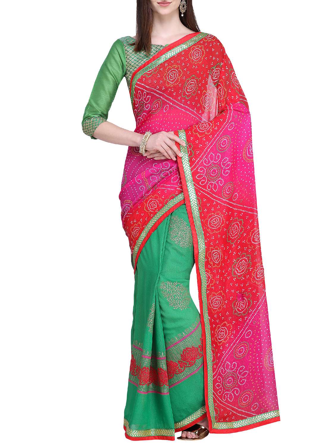 foil printed half & half bandhani saree with blouse