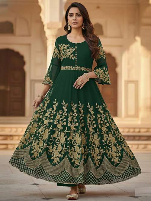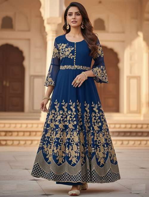 - These attractive gowns come in fit & flare made of georgette fabrics that can surely garner you lots of compliments when you wear it.