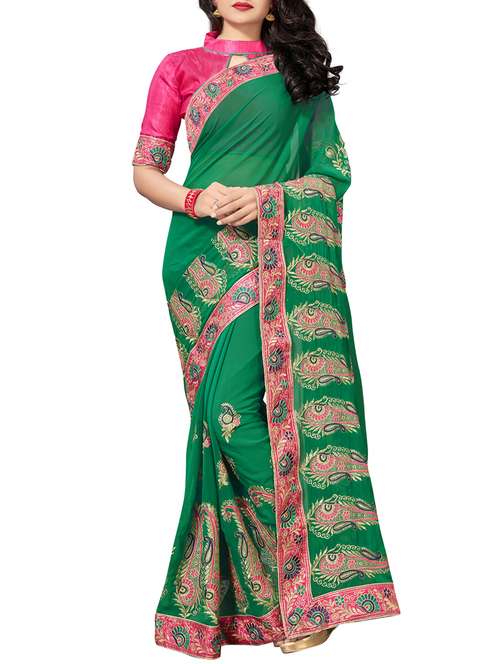 - » paisley embroidered turquoise saree with blouse