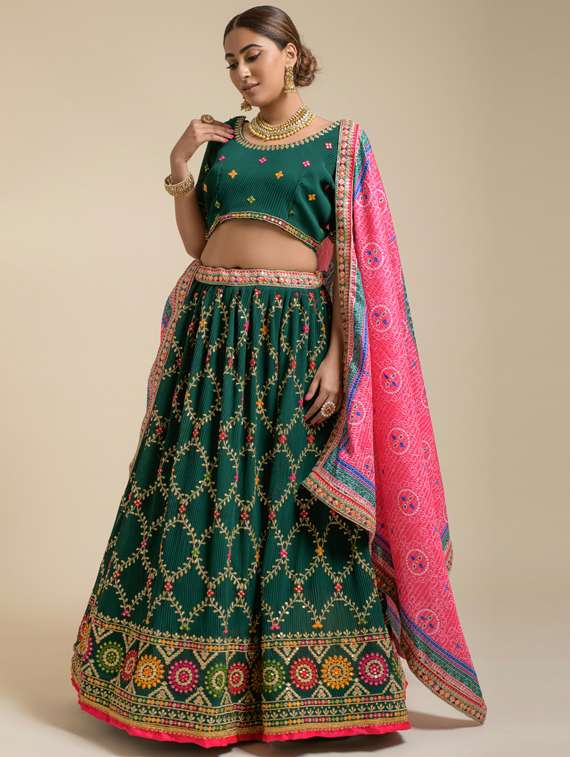 self designed embroidered flared lehenga - 19756046 - Very Small Image - 1