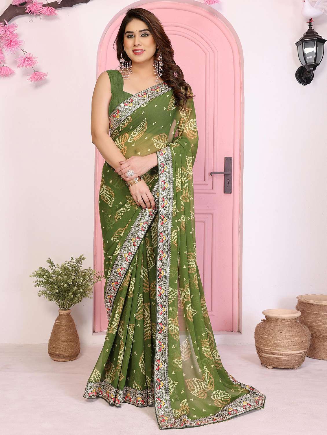 women bandhani printed saree with blouse - 22141089 - Very Small Image - 1