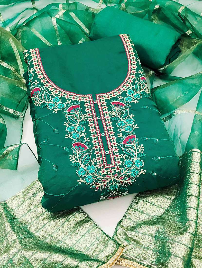 women solid with work embroidered unstitched suit set
