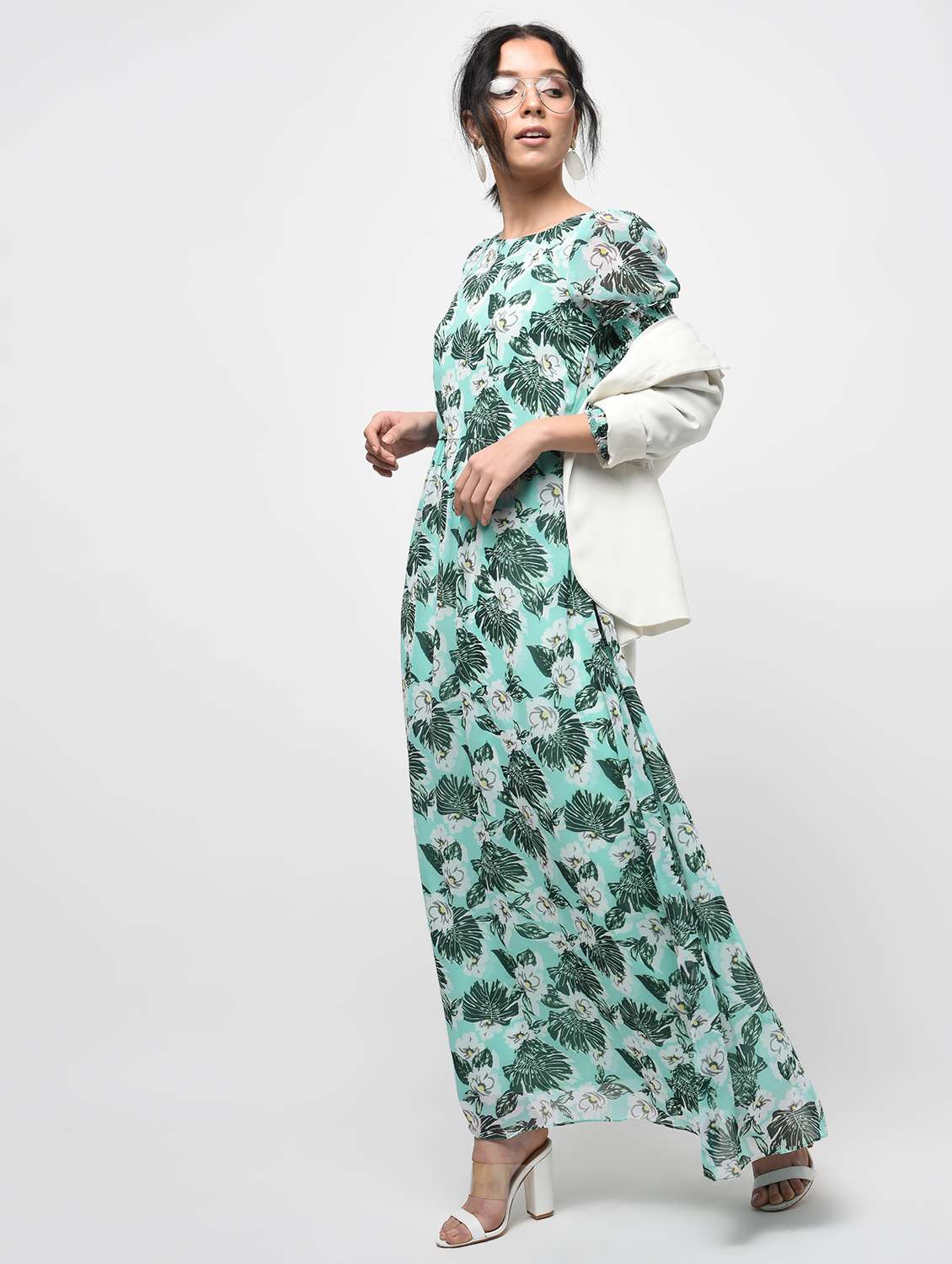 smocking detail floral maxi dress