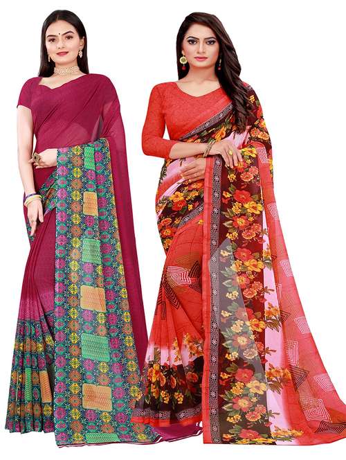 women pack of 2 casual wear combo sarees with blouse